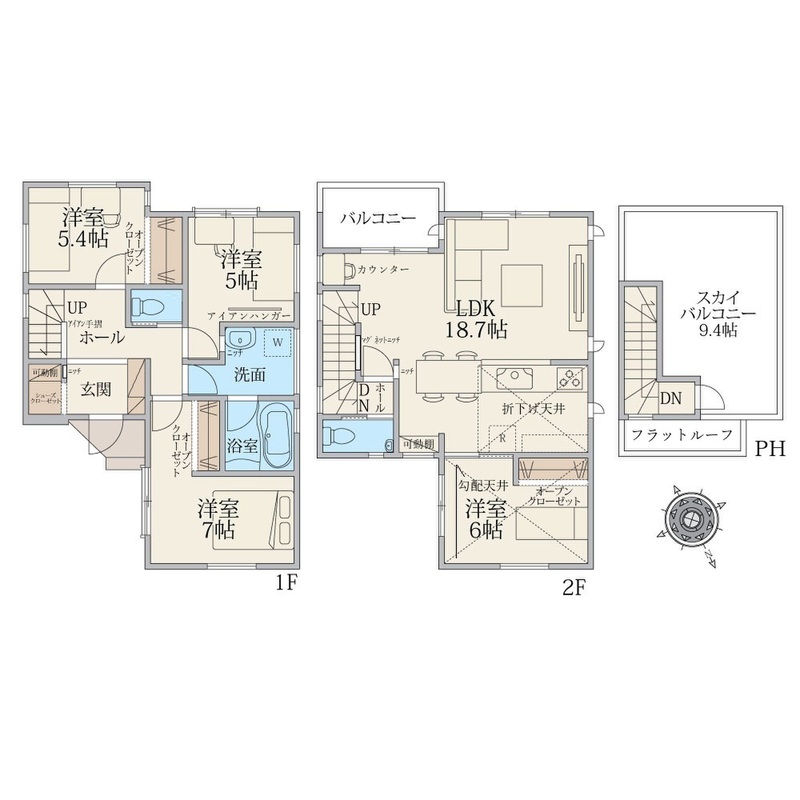 北欧系ノルディックスタイル!シンプルで清潔感に溢れたデザイン。当社の魅力であるスカイバルコニーでは、テーブルやイスを出してカフェのような空間にしたり子供の遊び場として使ったり使用方法は様々!