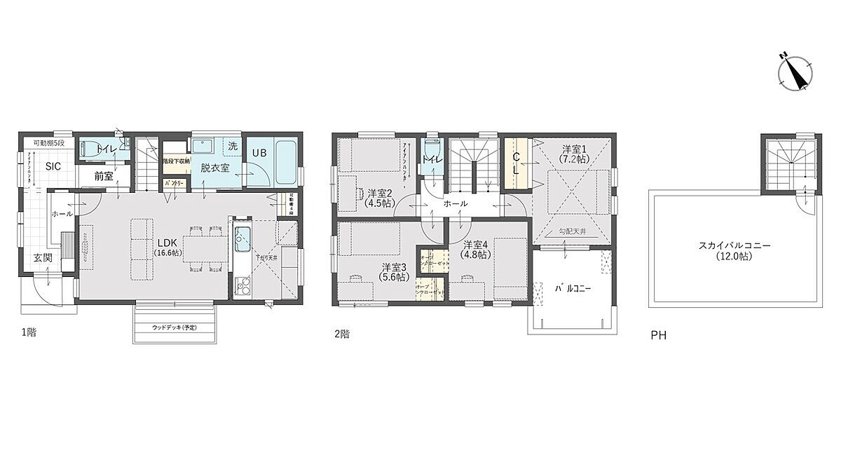 1階に水廻りがまとまり家事導線もよく毎日の家事もはかどります!自慢のスカイバルコニーは12帖の広さ!天空の家で上質な時間を。