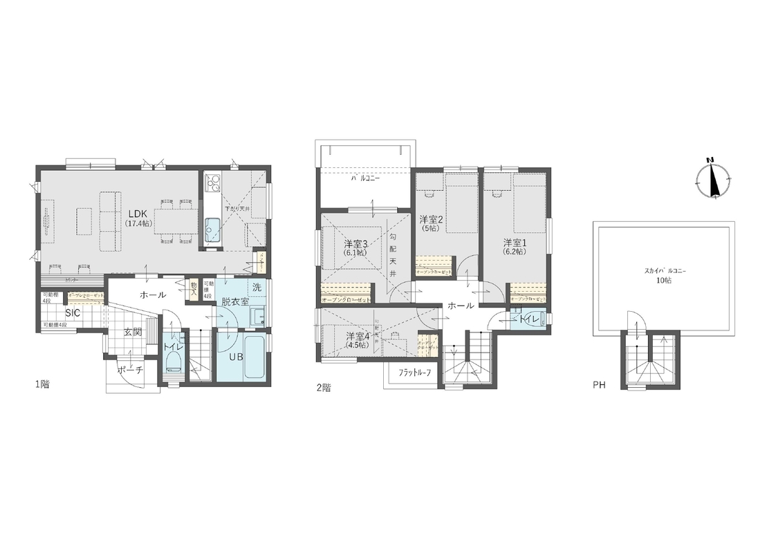 シンプル・清潔感の溢れる北欧系スタイルの新築戸建で新生活を!自慢のスカイバルコニーは10帖!陽当たり・眺望良好です。