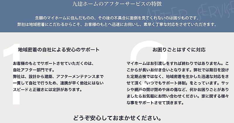魅力3 信頼と実績を誇る、九建ホームの家。万全なアフターフォローで安心!