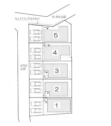 | 建物面積 | 93.00m2~98.12m2 | 土地面積 | 116.44m2~125.21m2<私道負担あり:9.14m2~9.14m2> |