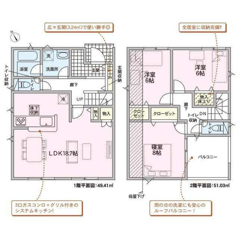 | 建物面積 | 100.44m2~102.06m2 | 土地面積 | 122.98m2~146.93m2 |