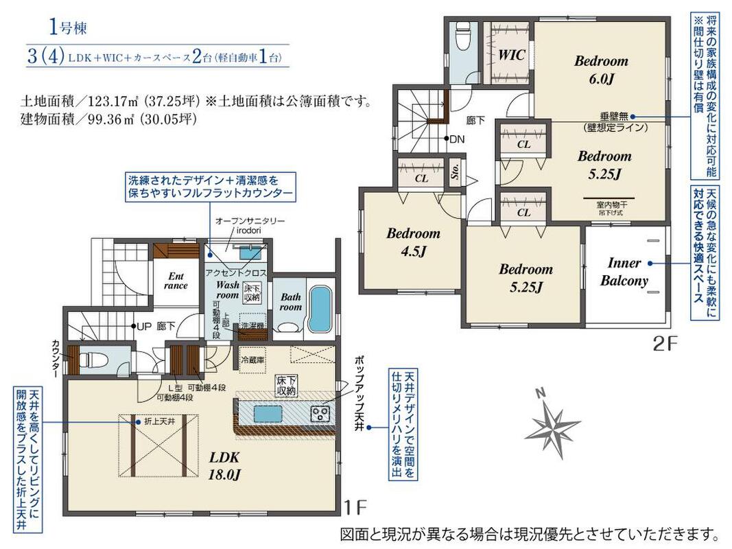 | 建物面積 | 99.36m2 | 土地面積 | 123.17m2 |