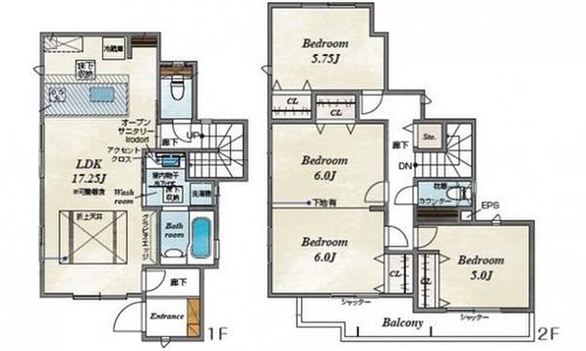 - ※完成予想図やCG合成画像は、門塀・植栽・庭・外観等、実際とは多少異なる場合があります。