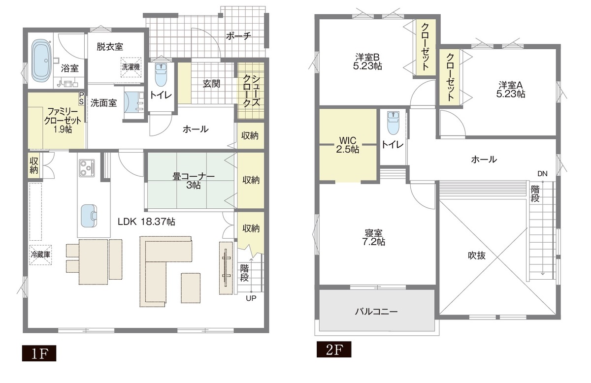 家事も収納もスムーズに。暮らしにゆとりが生まれる工夫が詰まった間取りLDKに畳コーナーを設置し家族の癒やし空間を確保。