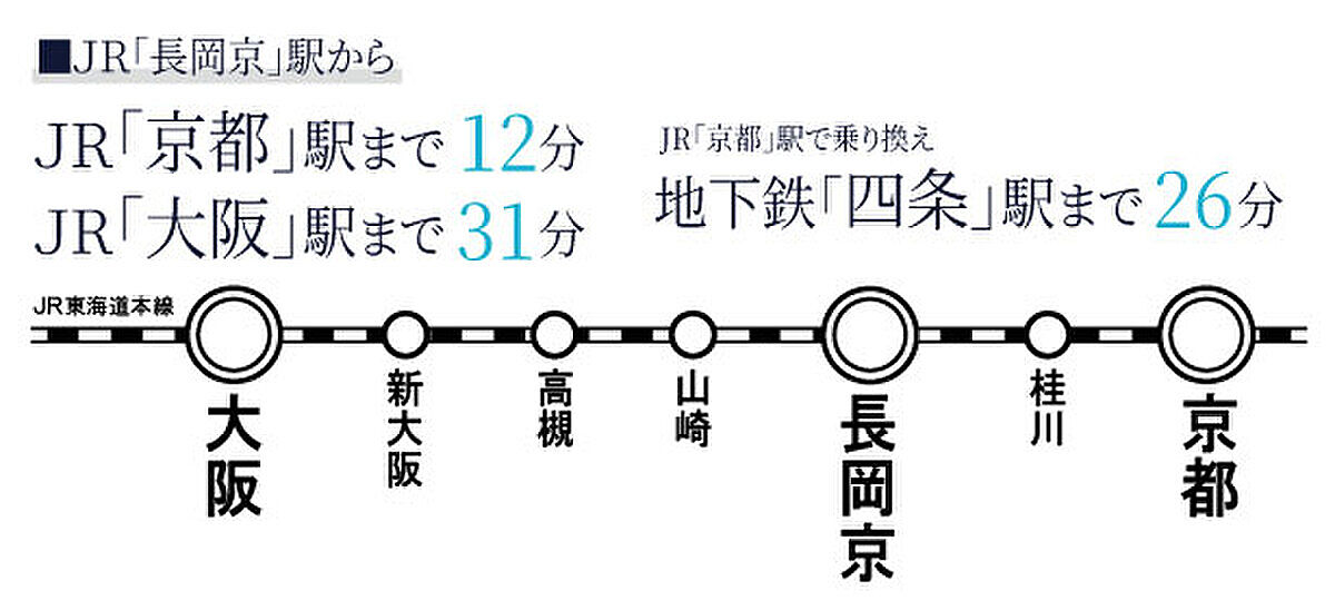 JR東海道・山陽本線「長岡京」駅 徒歩12分 阪急京都本線「長岡天神」駅 徒歩12分 |