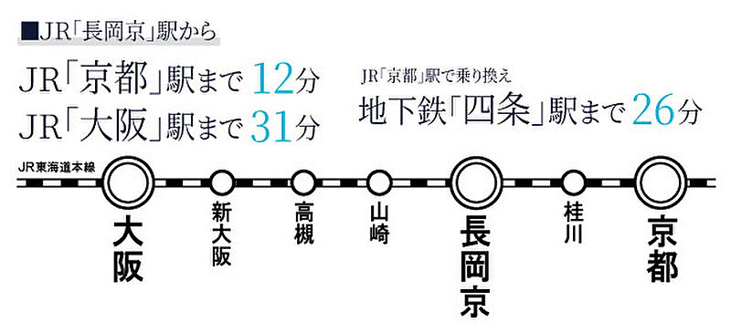 JR東海道・山陽本線「長岡京」駅 徒歩9分 阪急京都本線「長岡天神」駅 徒歩11分 |