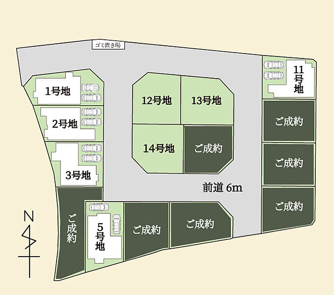 | 駐車場 | 1台 ~ 2台 | 道路の幅員 | 東側公道 幅:6m 間口7.5m |
