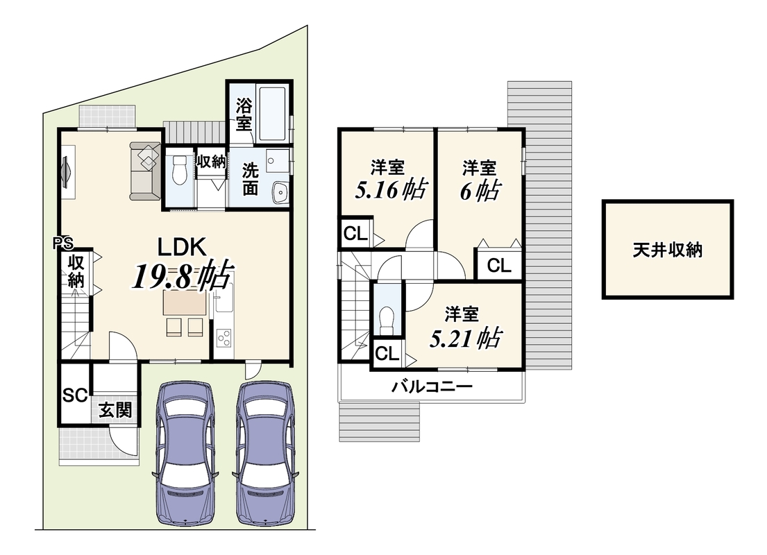 - ※完成予想図やCG合成画像は、門塀・植栽・庭・外観等、実際とは多少異なる場合があります。