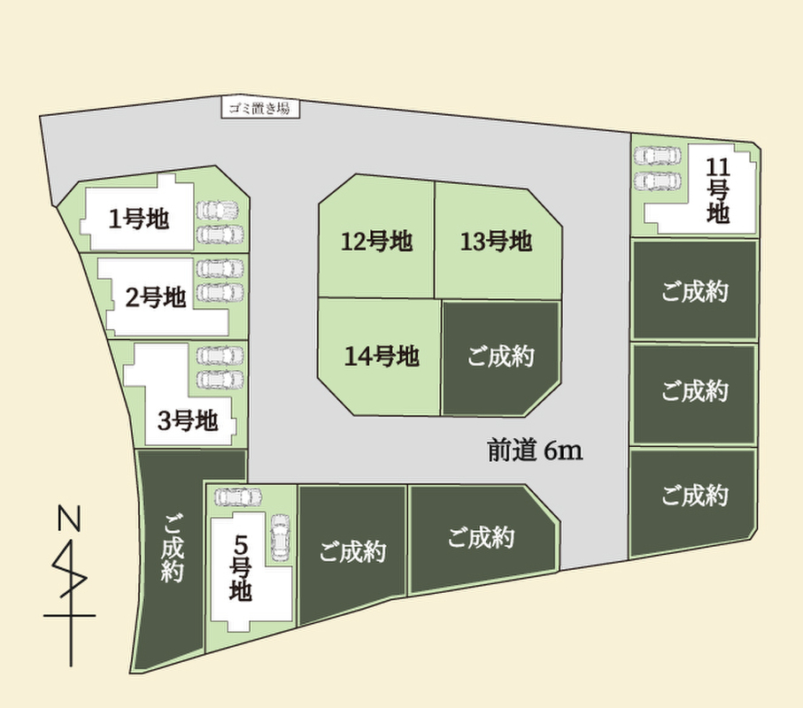 | 駐車場 | 1台 ~ 2台 | 道路の幅員 | 東側公道 幅:6m 間口9.44m |