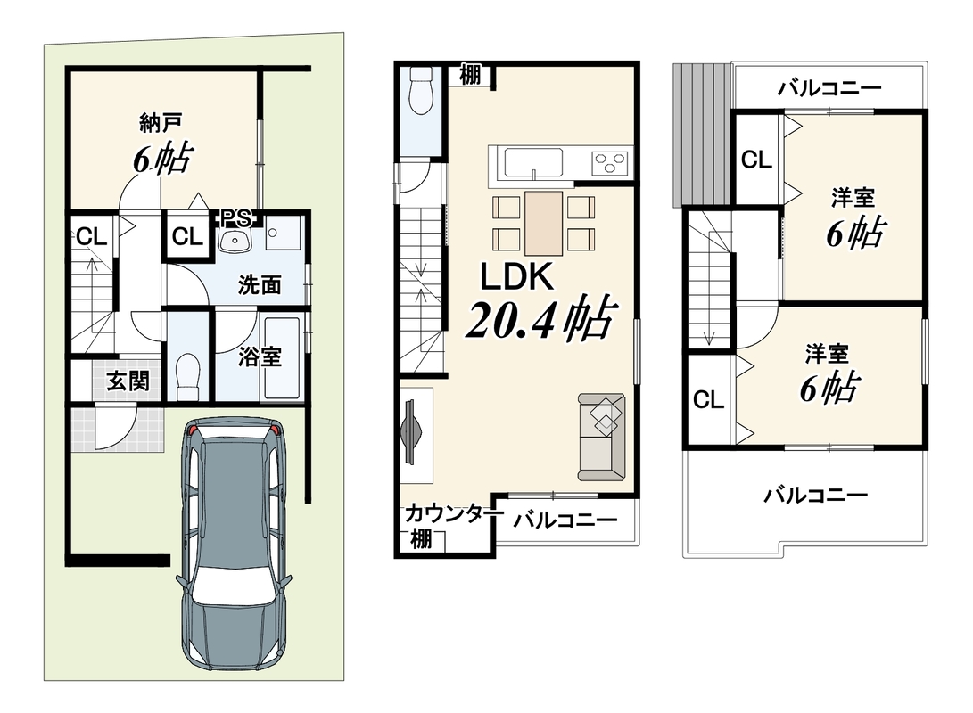 | 間取り | 2SLDK | 建物構造 | 木造3階建 |