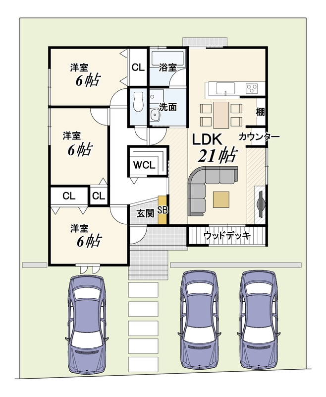 - ※完成予想図やCG合成画像は、門塀・植栽・庭・外観等、実際とは多少異なる場合があります。