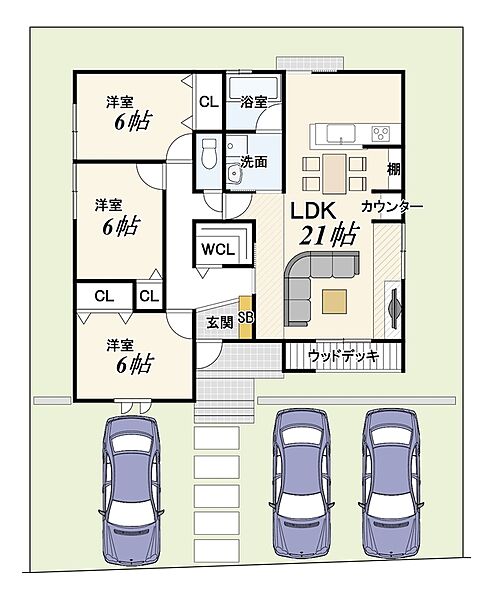| 駐車場 | 3台 | 道路の幅員 | 南側(公道):幅6m 間口13.1m |
