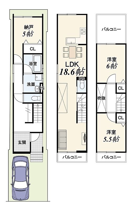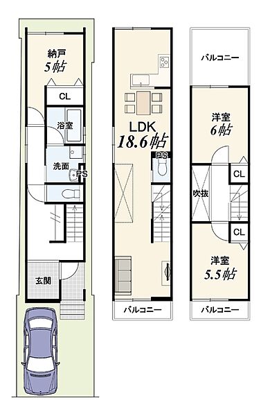 | 間取り | 2SLDK | 建物構造 | 木造3階建 |