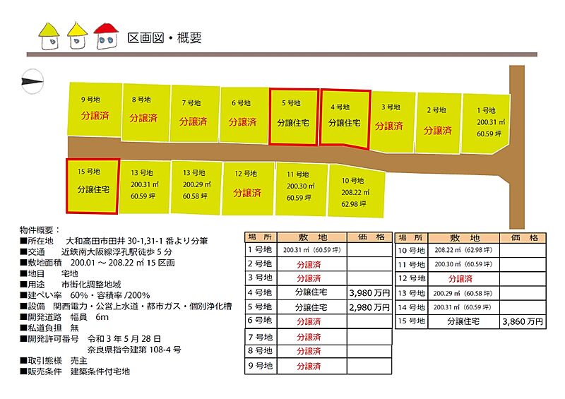 | 販売価格 | 2,980万円(5号地)、3,580万円(15号地)、3,980万円(4号地) | 最多価格帯 | - |