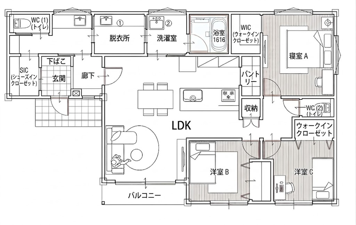 【1号地】考え抜かれた生活動線と、隠し扉の屋根裏部屋など遊び心が満載。ご家族のライフステージの変化を見据え、“計画的”にデザインされた長く楽しめる住まい。