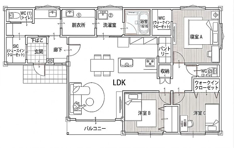 - ※完成予想図やCG合成画像は、門塀・植栽・庭・外観等、実際とは多少異なる場合があります。