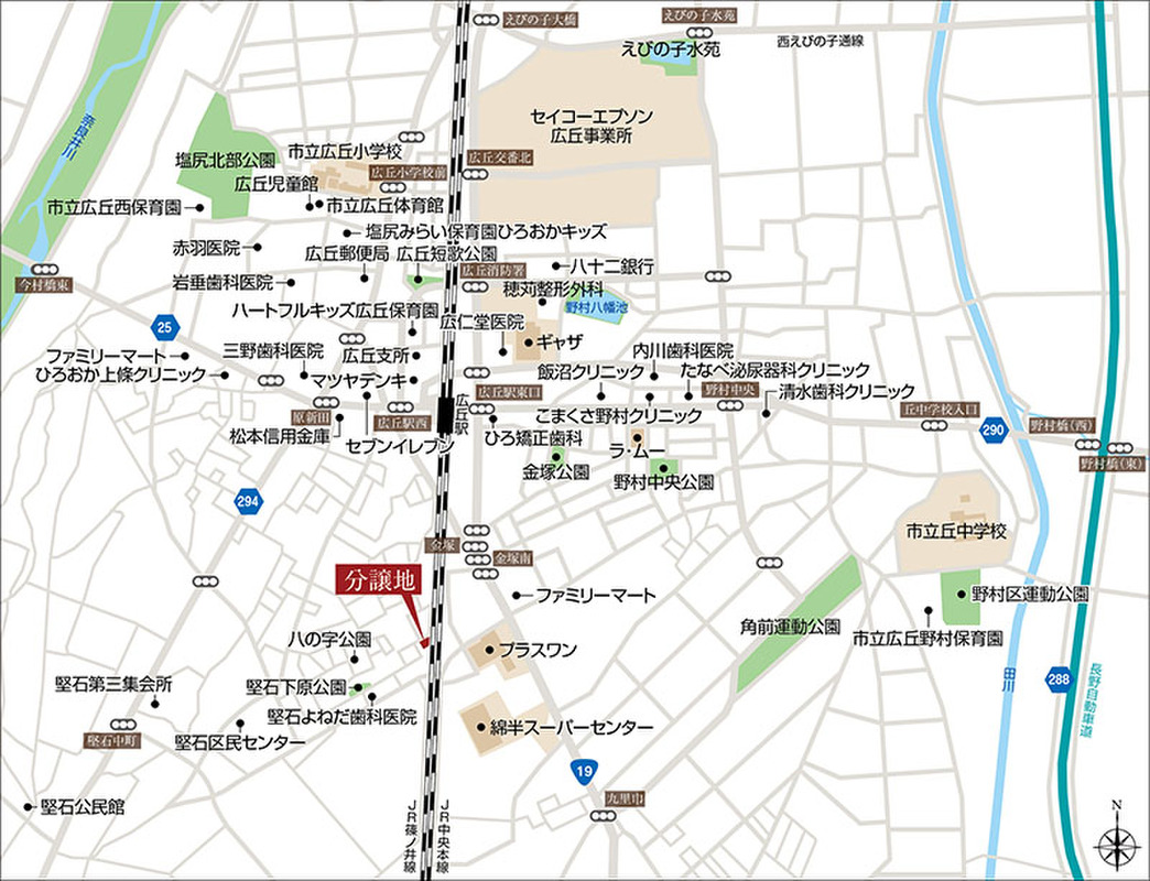 JR篠ノ井線「広丘」駅 徒歩10分 約770m(車2分) |
