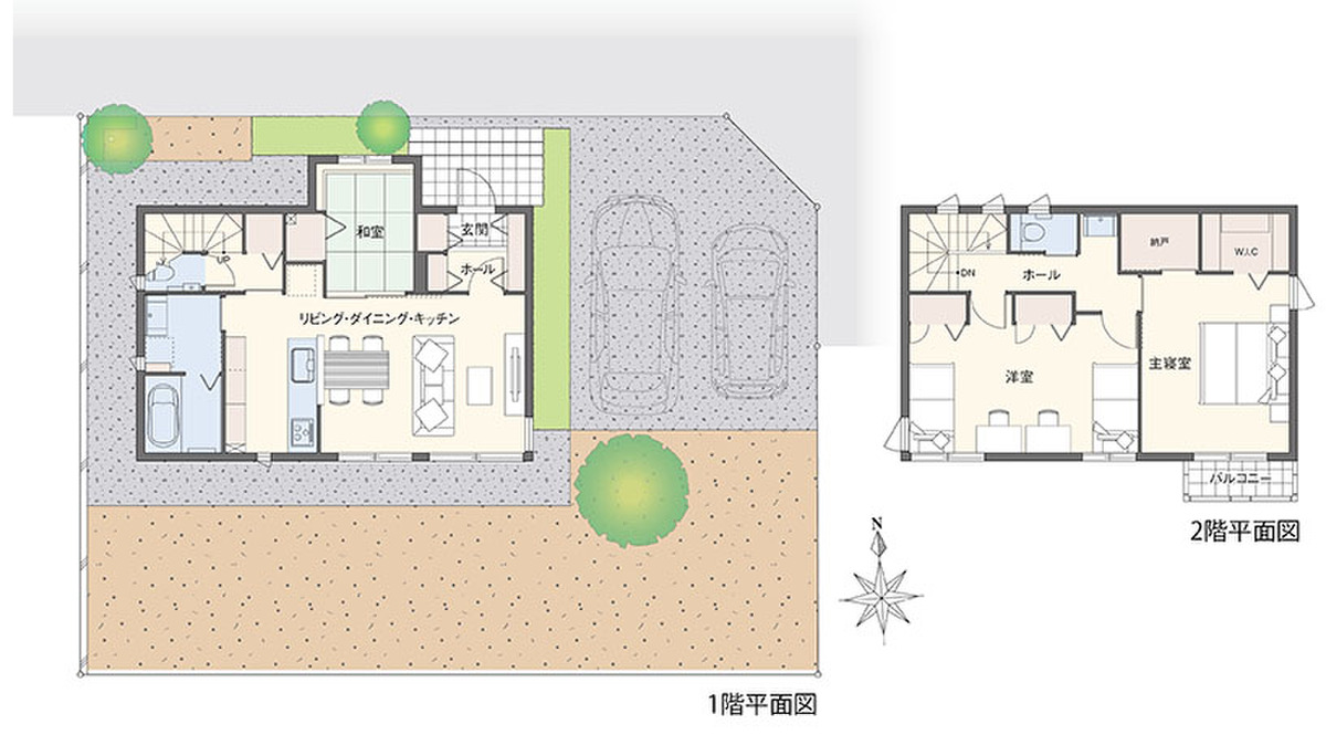 - ※完成予想図やCG合成画像は、門塀・植栽・庭・外観等、実際とは多少異なる場合があります。