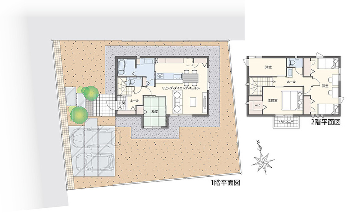 - ※完成予想図やCG合成画像は、門塀・植栽・庭・外観等、実際とは多少異なる場合があります。