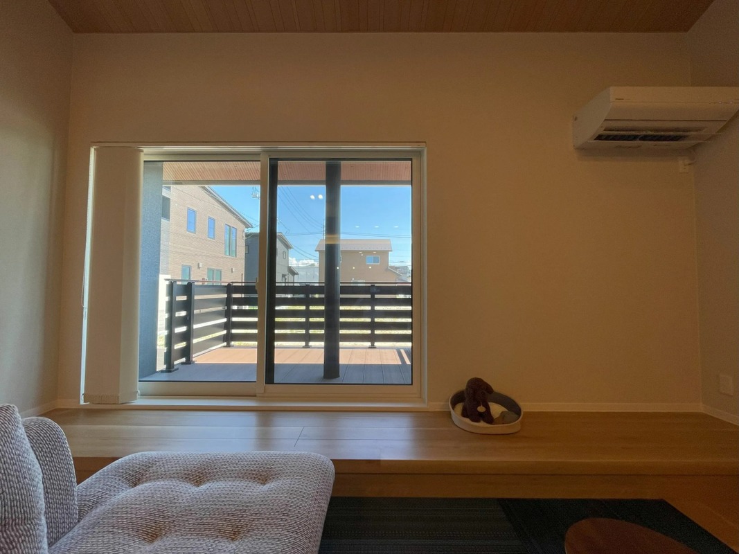 ■リビング窓から繋がるウッドデッキはお子様やワンちゃんとの団欒の空間