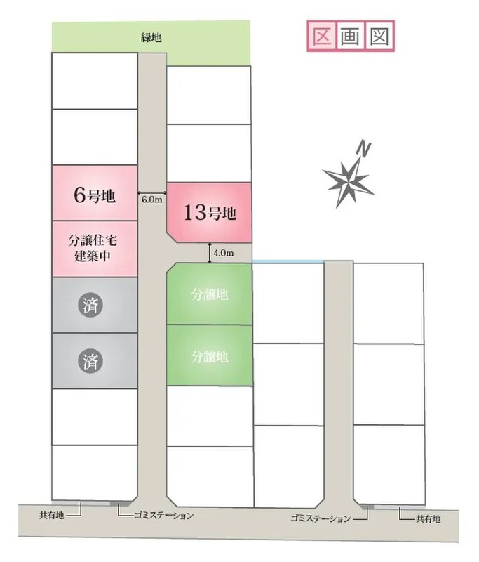 | 駐車場 | 3台 | 道路の幅員 | 分譲地内4.0m~6.0m(公道) |
