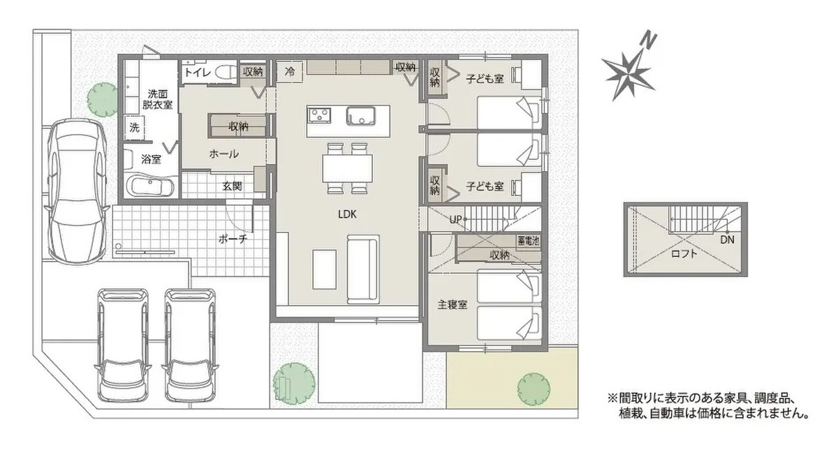- ※完成予想図やCG合成画像は、門塀・植栽・庭・外観等、実際とは多少異なる場合があります。