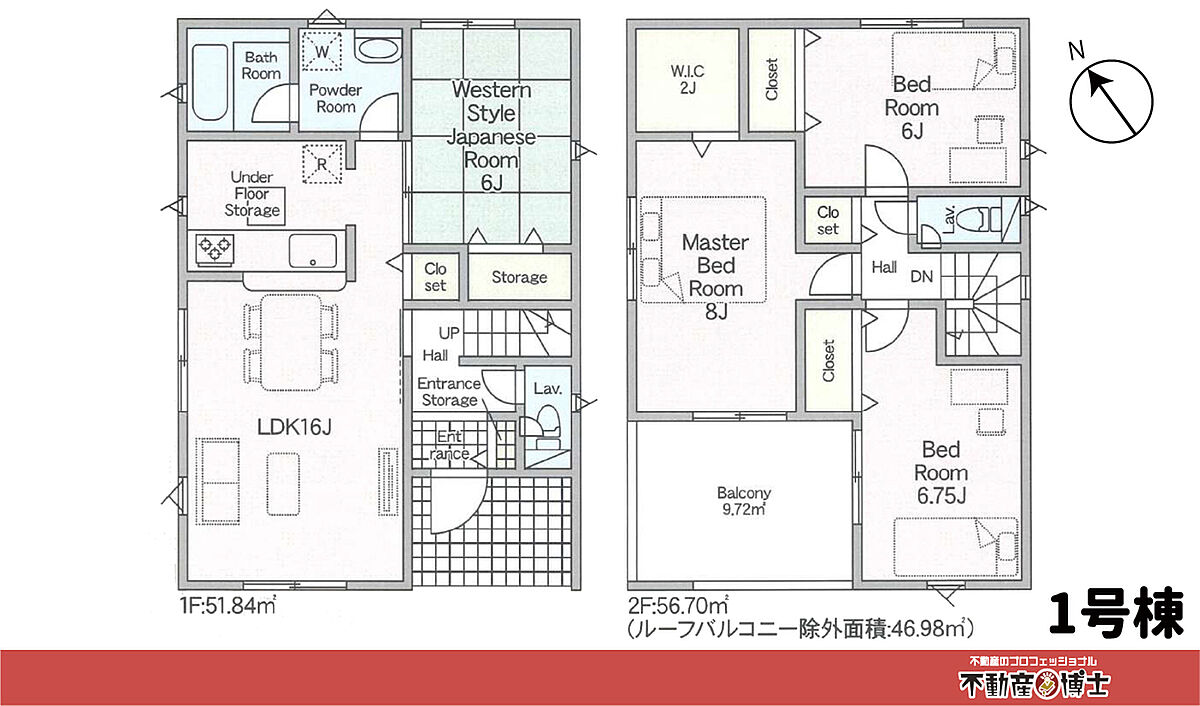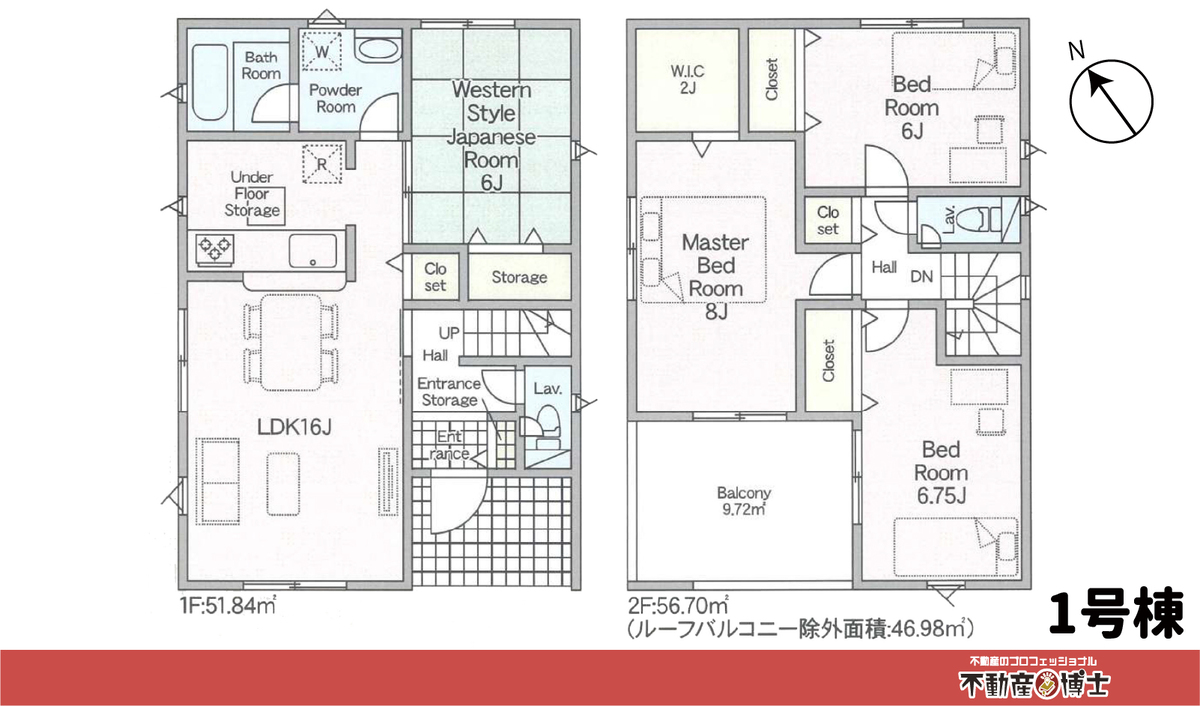 1号棟 間取り 4LDK 価格 2780万円 建物面積 108.54m2(32.83坪) 土地面積 168.80m2(51.06坪) -