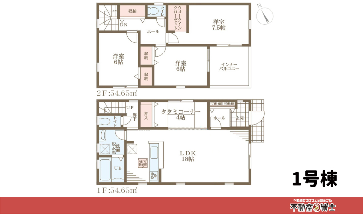 1号棟 間取り 4LDK+WIC+ランドリールーム 価格 3280万円 建物面積 112.19m2(33.93坪) 土地面積 180.00m2(54.44坪)