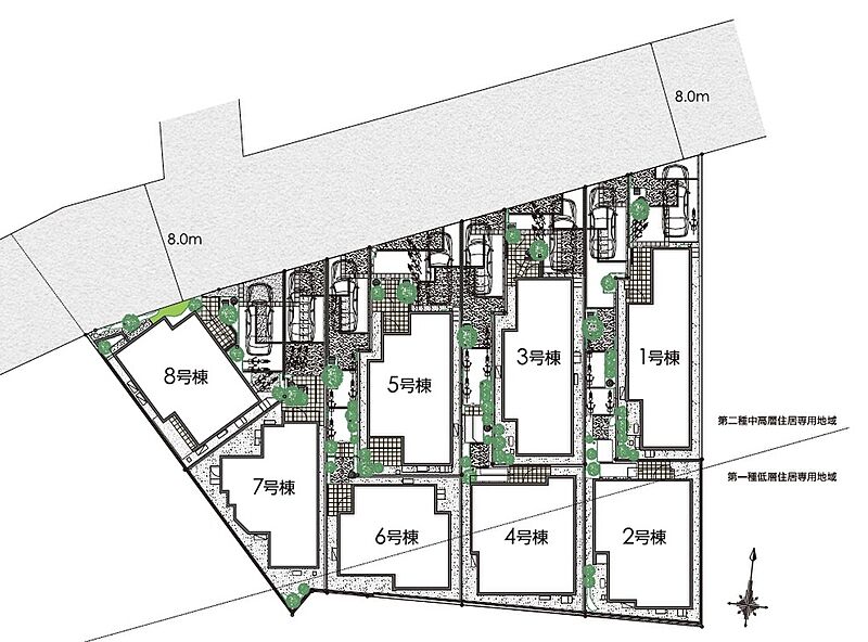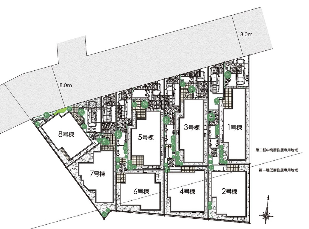 小学校3分、生活利便施設が15分圏内に揃う、全8邸/誕生