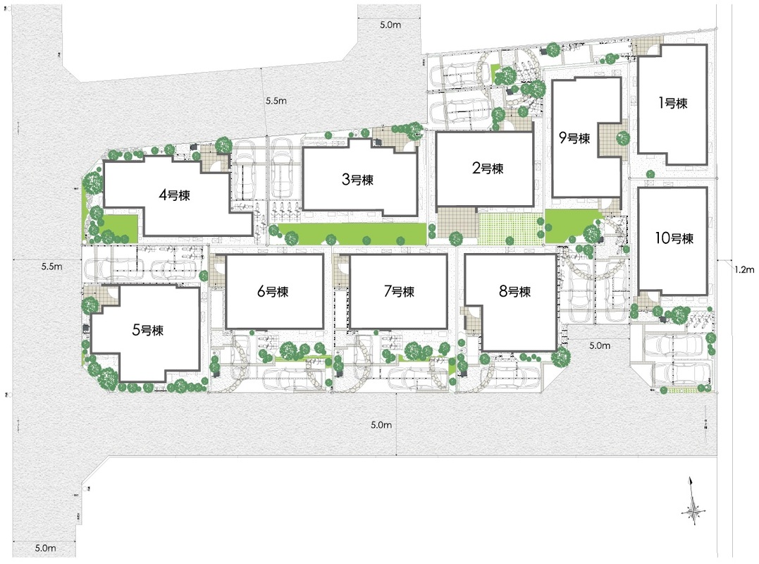 | 駐車場 | 1台 | 道路の幅員 | 北側5.51m、西側5.5m、東側1.2m(公道)アスファルト舗装 南側5.0m(開発道路) |