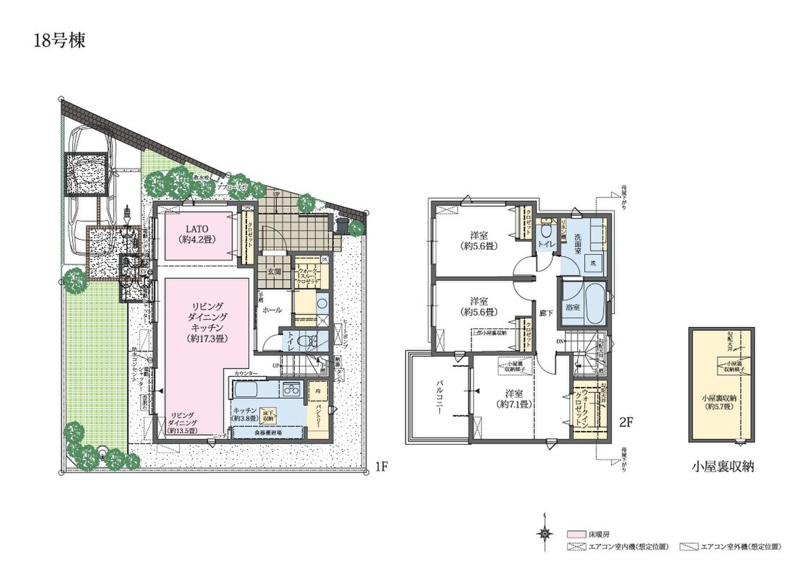 18号棟 間取り 3(4)LDK ※3LDKを4LDKに変更可(有償) 価格 未定 建物面積 99.57m2(約30.11坪) 土地面積 125.21m2(約37.87坪) -