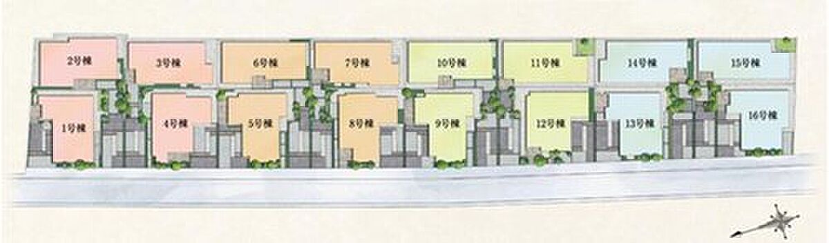 4宅地×4ブロックの敷地計画、四季を感じる街並みをデザイン