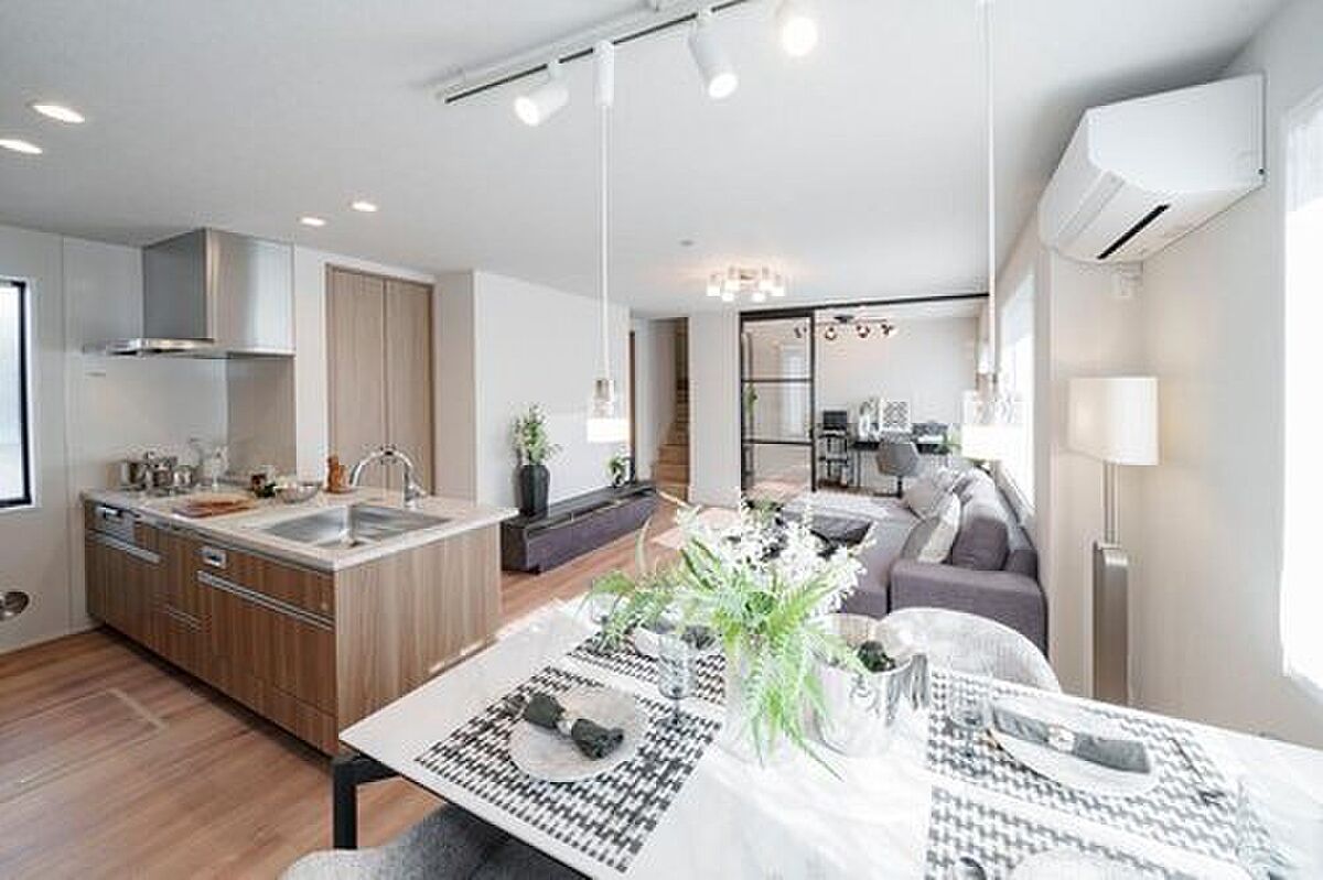 リビング ダイニング キッチンを一体利用できるなど、ゆとりある空間を追求。明るさと開放感に包まれる高天井の2階リビングや、