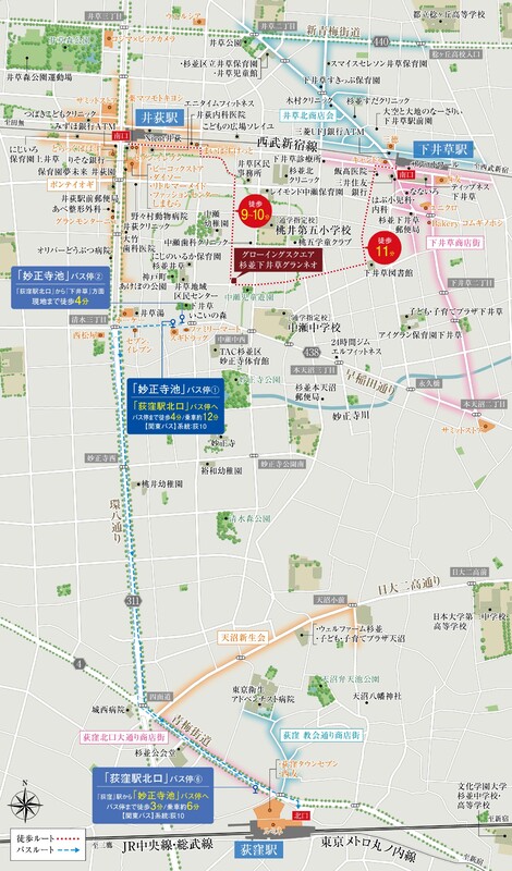 西武新宿線「井荻」駅 徒歩9分~10分 西武新宿線「下井草」駅 徒歩11分 JR中央線「荻窪」駅 バス乗車10分「妙正寺池」バス停 徒歩4分 |