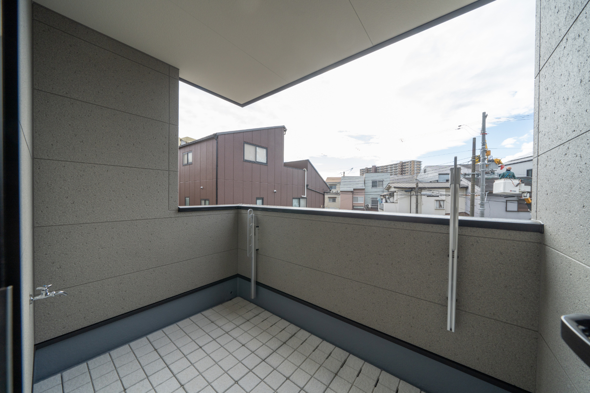 洗濯物が雨に濡れにくいインナータイプのバルコニー。サニタリースペースから直接出入りができるので洗濯動線もスムーズです。周囲からの視線が届きにくく、一息つきたい時のリラックススペースとしてもおすすめ♪