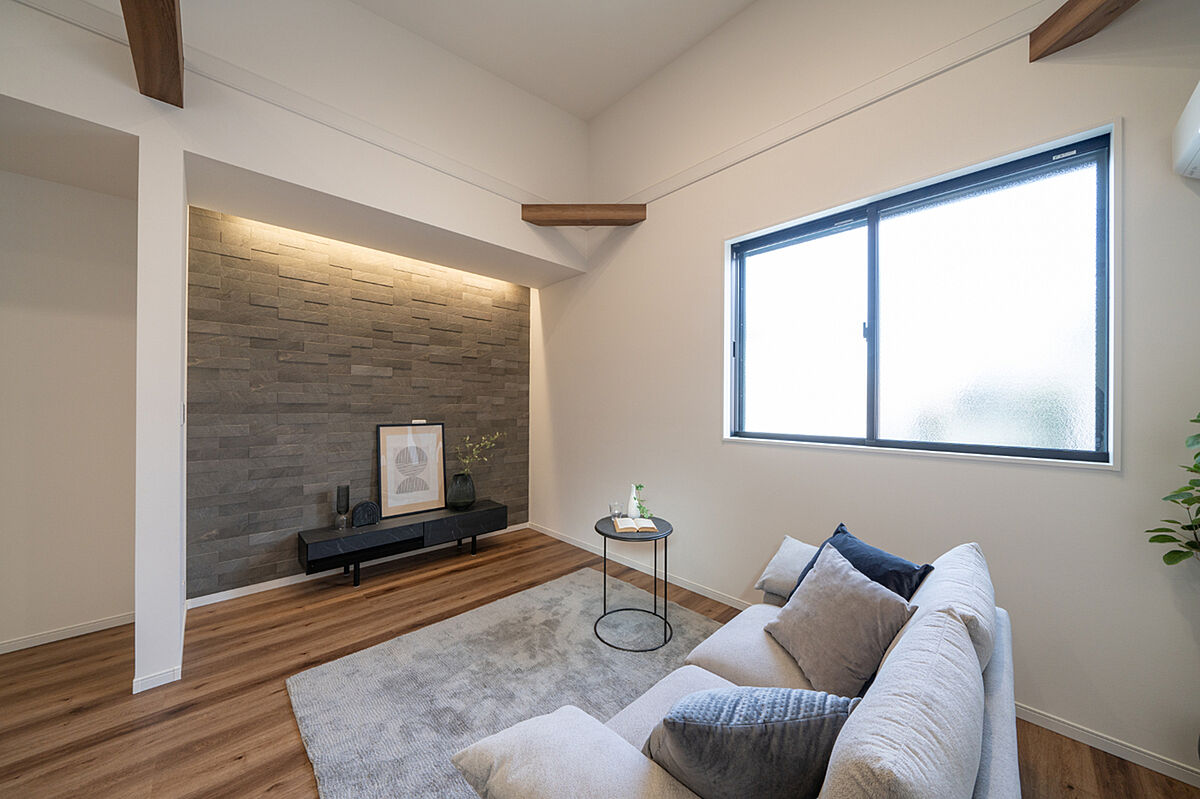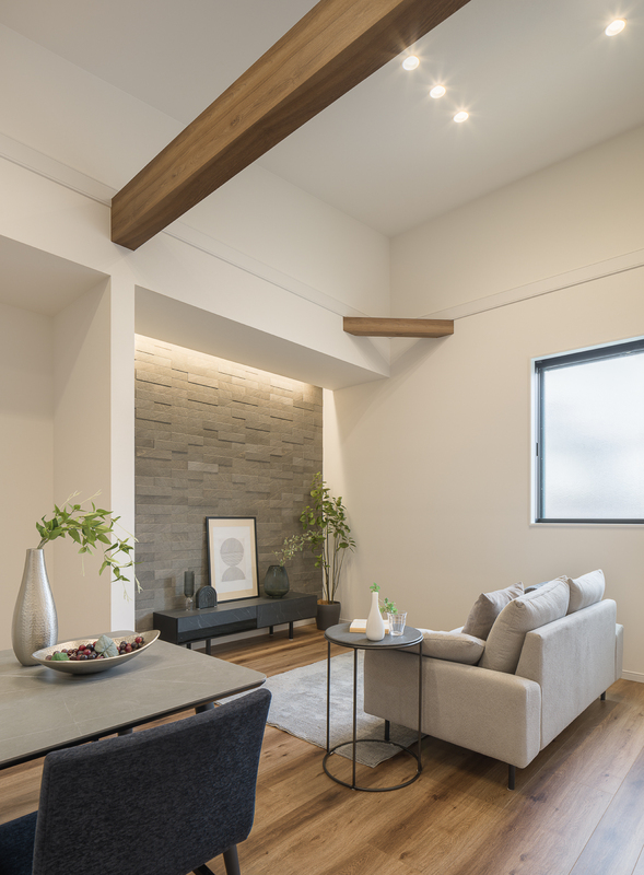 LDKの一部に施したエコカラットは、室内の湿気やにおいを吸収してくれる効果があります。またデザイン性にも優れており、インテリアの一部としてもお楽しみいただけます。