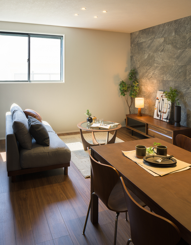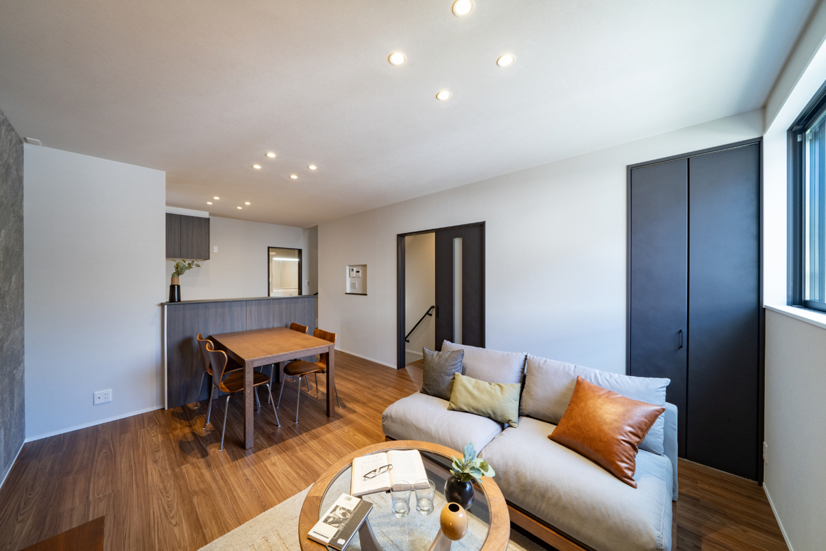 LDKは約15.0帖、家具を配置してもゆとりのある広さです。2階リビングのため、外からの視線が気にならずに、ゆったりと家族団らんのひと時を過ごせます。