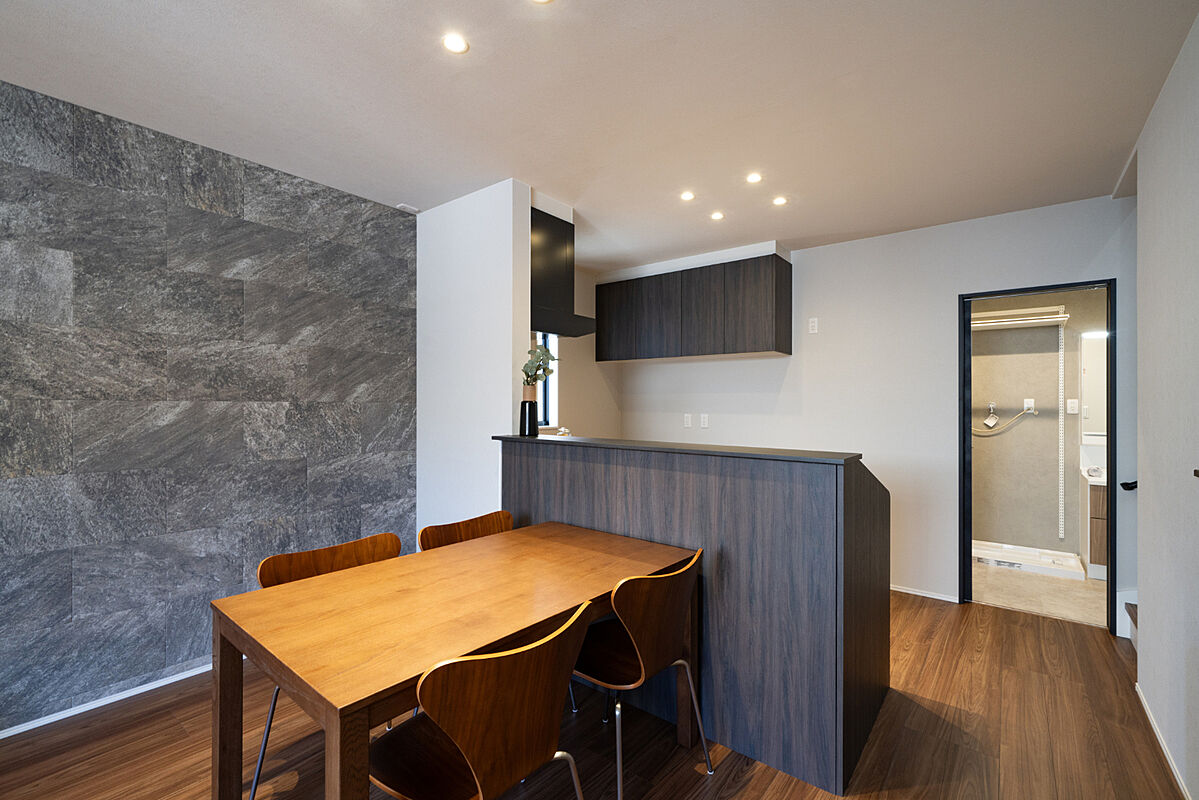 LDKは約15.0帖、家具を配置してもゆとりのある広さです。2階リビングのため、外からの視線が気にならずに、ゆったりと家族団らんのひと時を過ごせます。