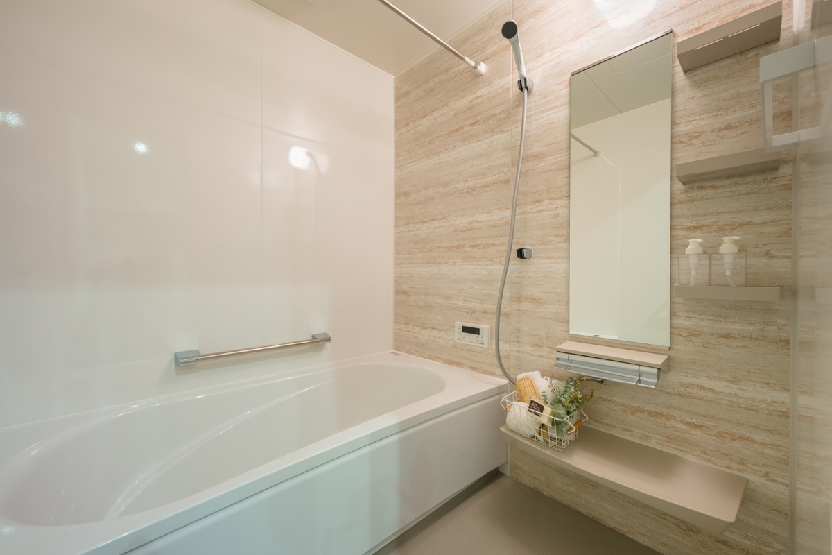 浴室乾燥機付きで、天候や時間に関わらず洗濯物を気持ちよく乾かすことができます。浴槽側には手摺りを設置しており、滑りやすい浴槽への出入りをサポートします。