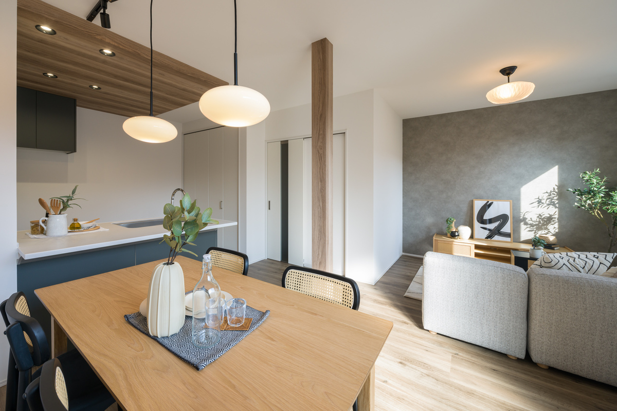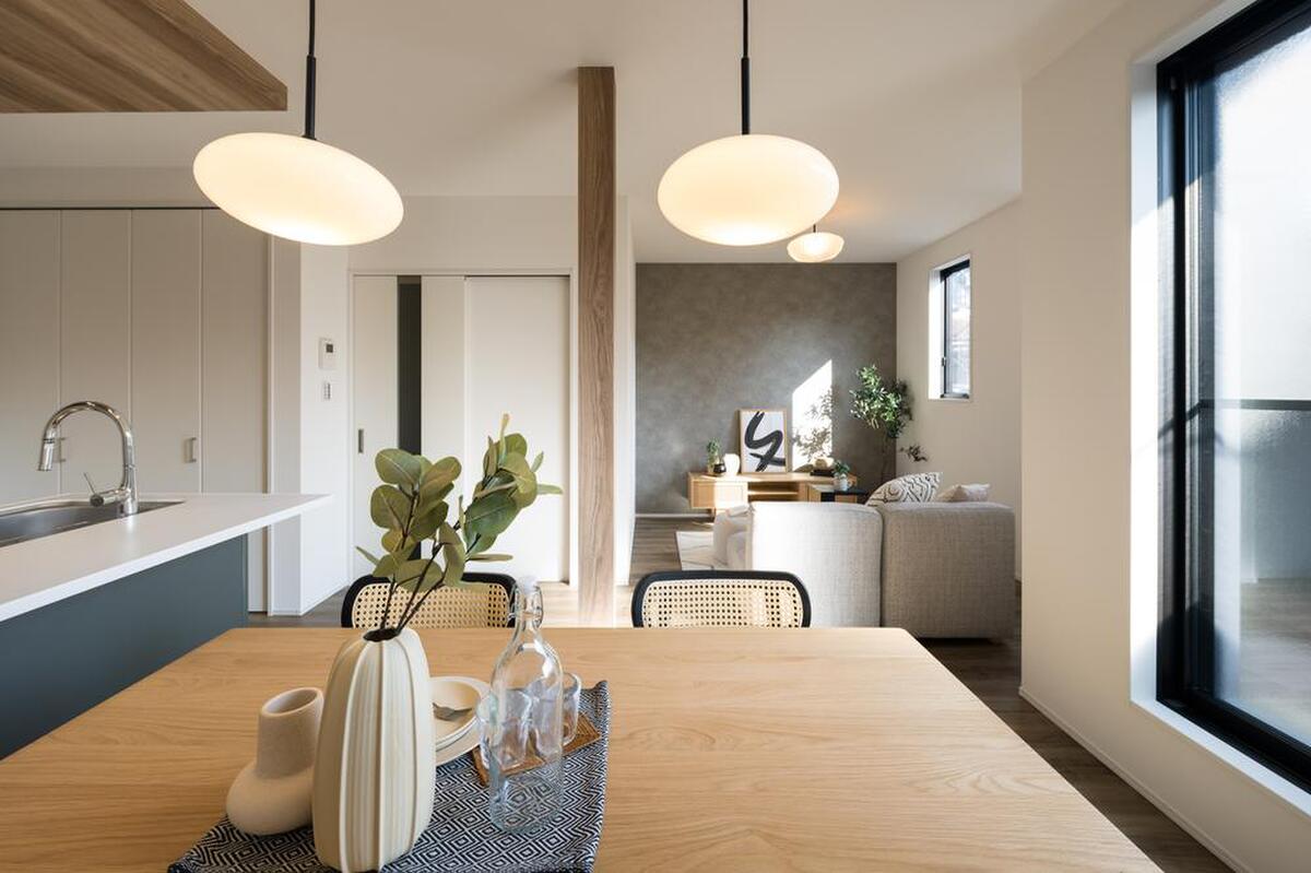 LDKは約17.2帖のゆとりある広さ。2階リビングのため、外からの視線が気になりにくく、ゆっくりと団らん時間を過ごしていただけます。