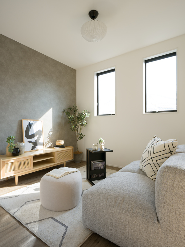リビングスペースには腰高窓を採用。明るい自然光が差し込みます。家具を設置しやすく、外からの視線が入りにくいのも嬉しいポイントです◎