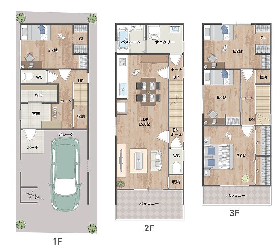 1階と3階には独立性の高い洋室を配置◎子...