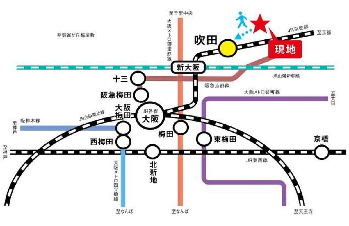 JR東海道本線「岸辺」駅まで徒歩18分。JR利用で「新大阪」駅や「大阪」方面へ直通アクセスが可能。毎日の通勤・通学も、休日のお出かけにも便利な立地です。