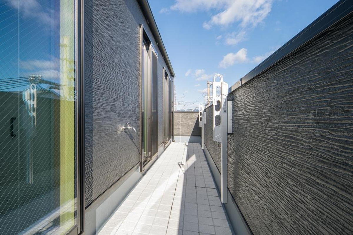 ・洋室2部屋と廊下に面した広々としたバルコニー。