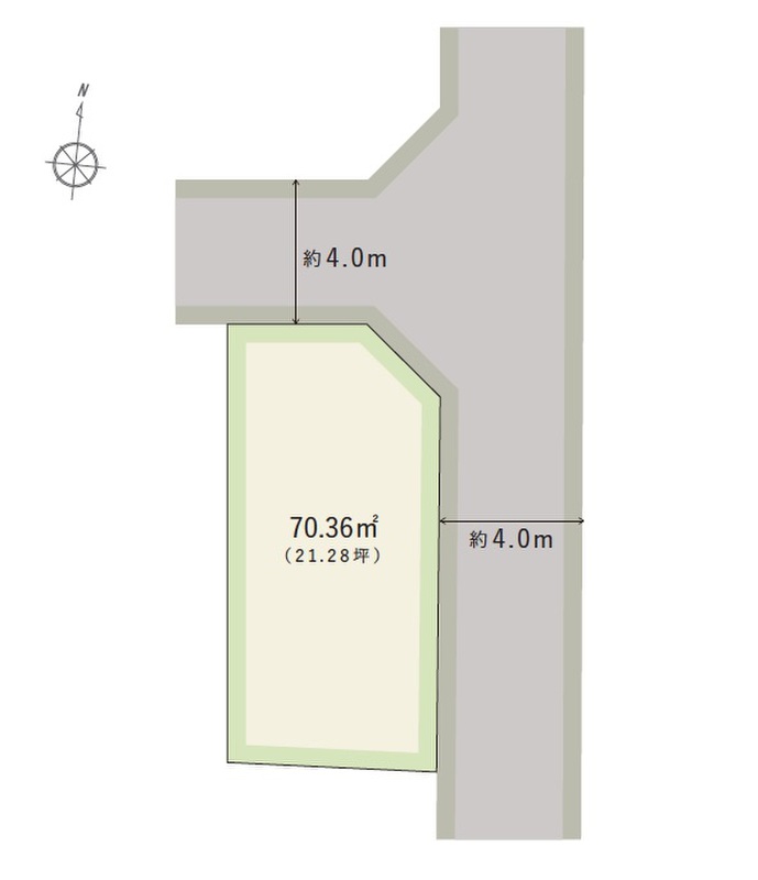 | 駐車場 | 1台 | 道路の幅員 | 北側幅員約4.0m私道、東側幅員約4.0m私道、私道負担:有/持出道路約43.92m2セットバック済 |