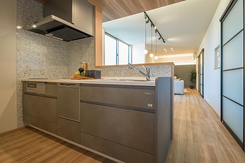 調理中でもご家族との会話が弾む対面式キッチンです。パントリーを設けており、保存食や飲料水・キッチン用品のストックなどをすっきりと保管できます。