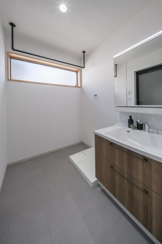 高窓を採用した明るい空間。ゆったりとした広さで、朝の身支度や家事がスムーズに行えます。室内物干しを設置しており、洗濯物の一時保管などにご活用いただけます。