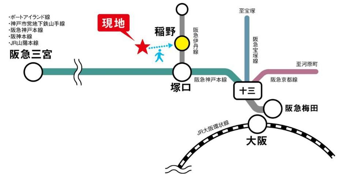 - 阪急伊丹線「稲野」駅 徒歩12分阪急神戸本線「塚口」駅 徒歩15分JR福知山線「猪名寺」駅 徒歩20分