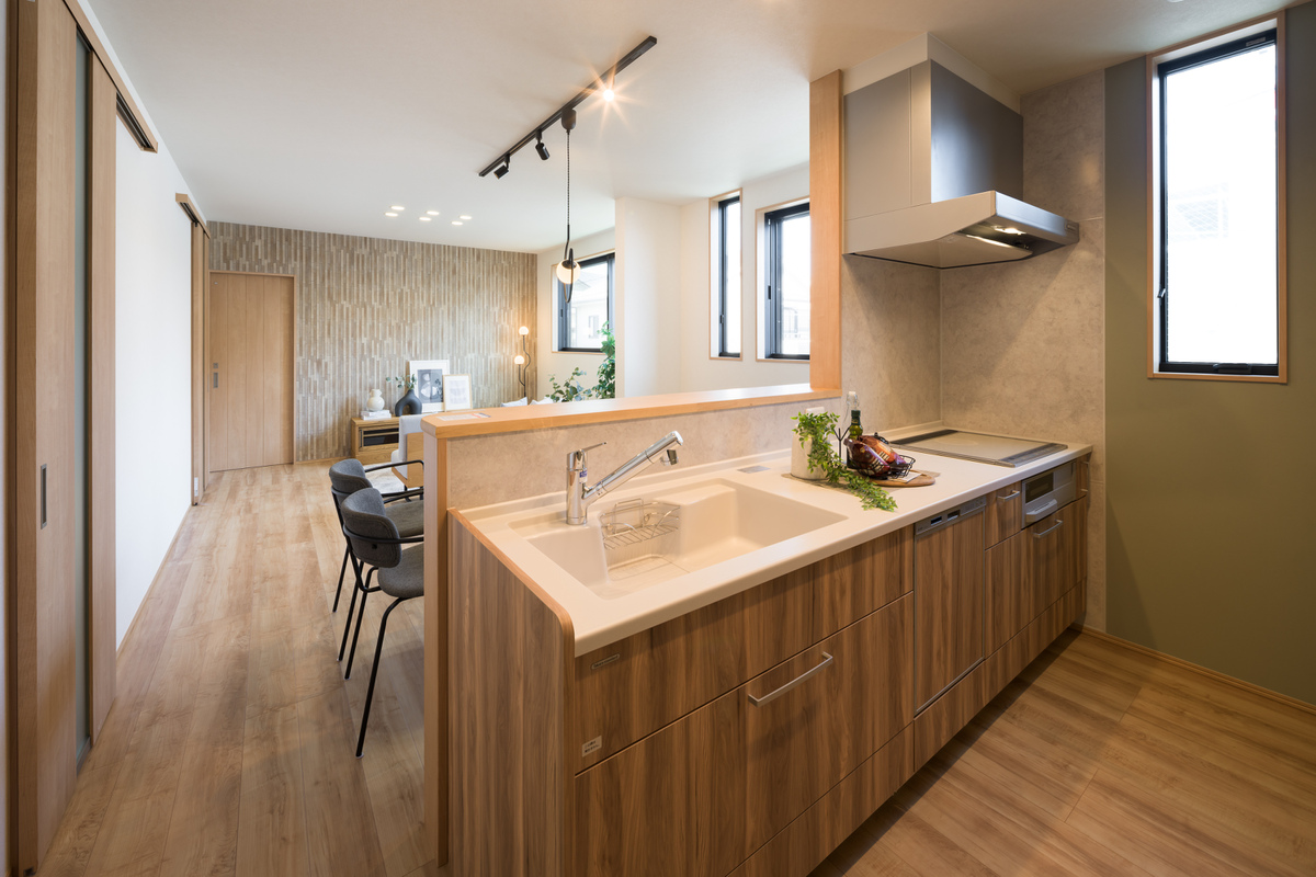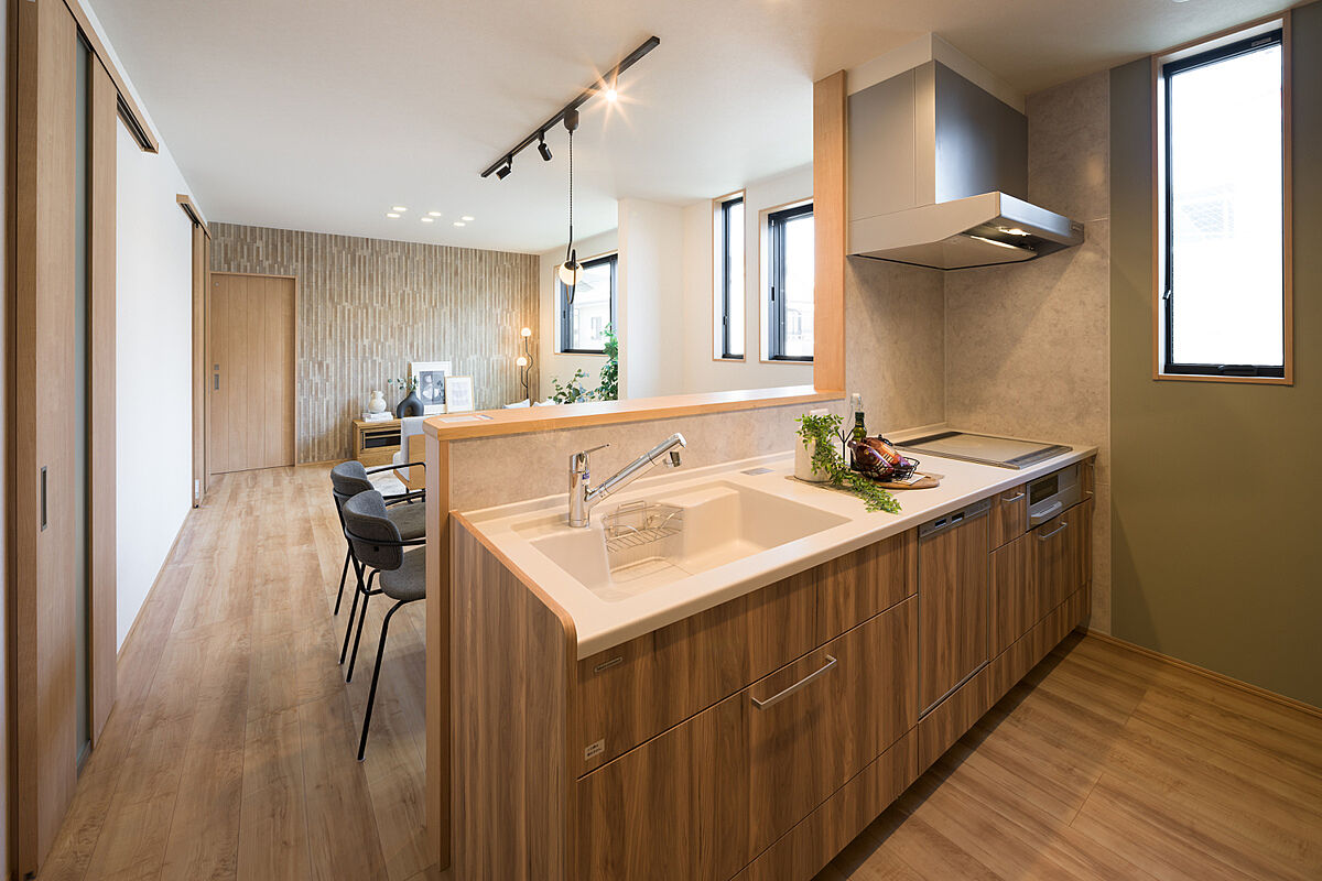 約18.0帖の2階LDKには、水回りを集約し、効率良く家事ができる動線を実現。1階洋室2部屋は、将来間仕切りが可能な2ドア1ルーム。暮らしの変化にも柔軟に対応できる間取りが魅力です。